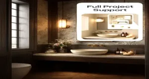 A complete design realization with 3D visuals, materials, and full project support. This transformation will redefine your bathroom — and we’ll make it exceptional.
