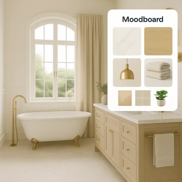 Smart functional layout and aesthetic direction. Defines optimal fixture placement, style, and mood for your bathroom.