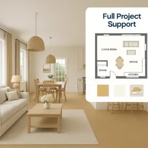 Once you purchase your package, you’ll receive a short questionnaire about your space, lifestyle, and design preferences. You’ll upload photos and measurements — and our team will create your personalized design concept. All communication and delivery happen online, so it’s easy and convenient.